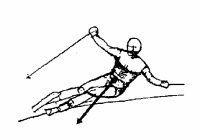スキーヤーがターンをしているとき、遠心力で外側に引っ張られます。その外側に引っ張られるカに対応して、重心をターンの中心方向(内傾姿勢)にもっていくことにより、雪の反作用が伴い弧が描かれます。スキーヤーは、角付けの角度を変えたり、重心移動によりターンに影響を与えます。スキーヤーが重心を角付けされたスキーの縦方向にそって前方に移すと、スキーの荷重が大きくなり回転する力が生じます。また、脚と胴の逆ひねりや角付けされたスキーの片側だけに働く雪の反作用などによって回転します。