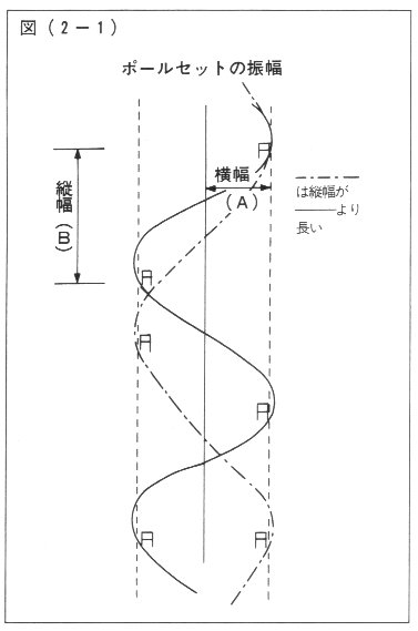 ただ、楕円を描くと言っても、実際に立ててみると、なかなかうまくはいきません。自然体でポールをセットして経験を積むことが大切です。一回セットしてから、難しい箇所があるところを手直ししながらトレ一ニングすると、セットの仕方も経験を積みながら、少しずつ覚えると思います。では、斜面に応じた基本的なパターンを少し紹介してみましょう。